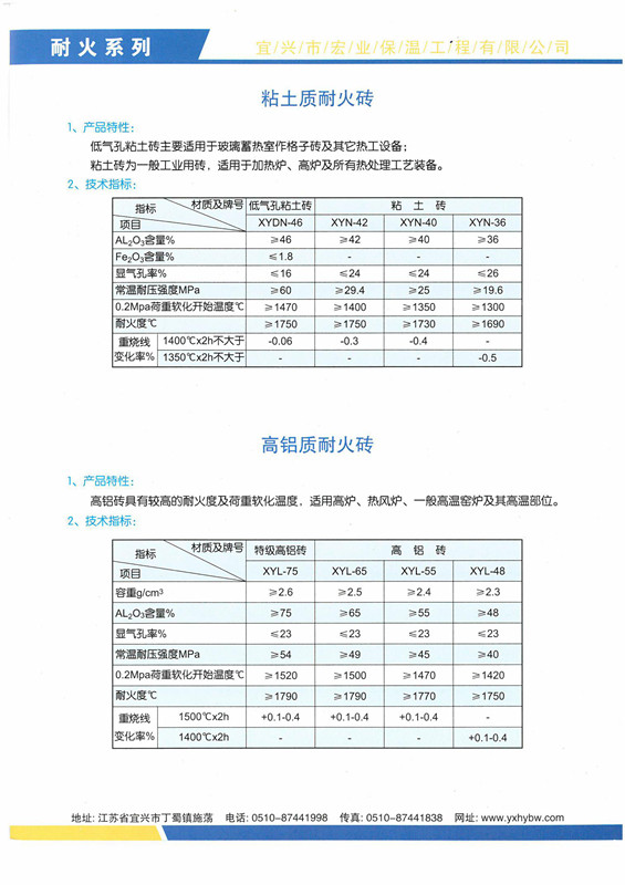 粘土質耐火磚、高鋁質耐火磚