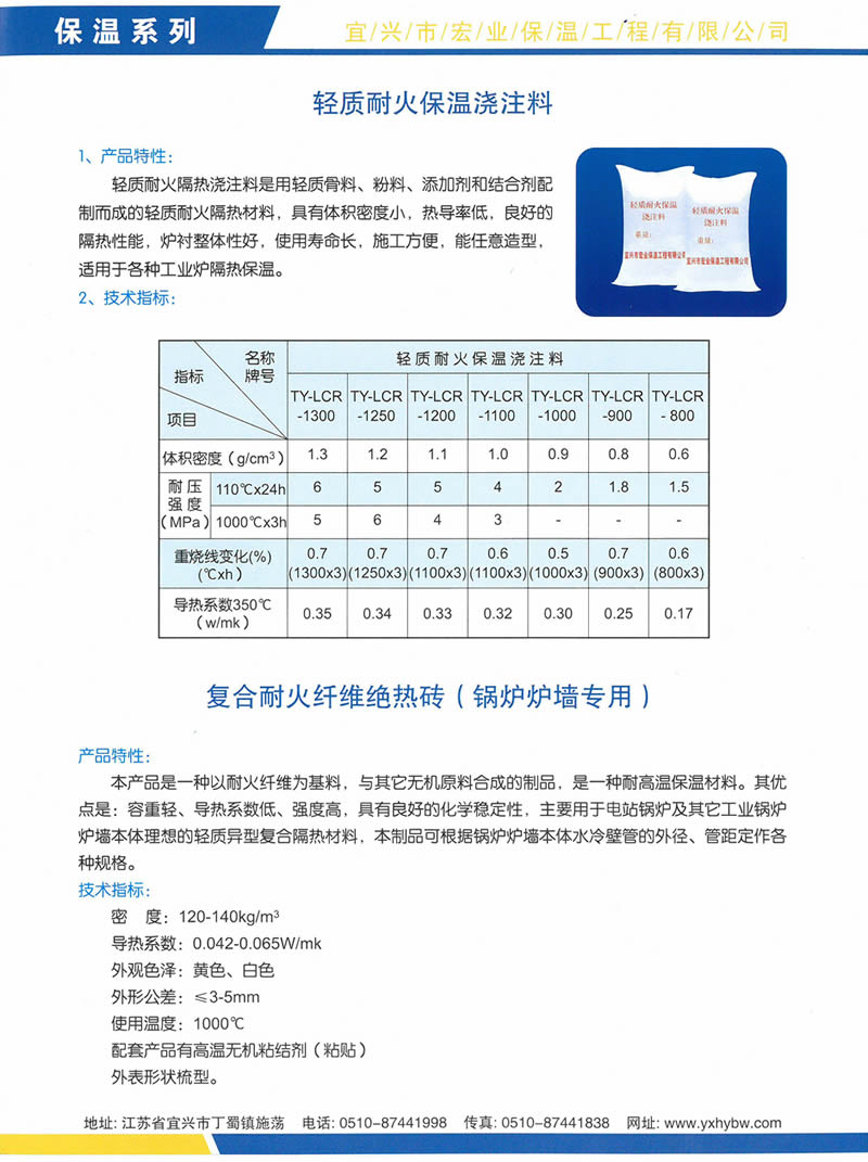 輕質耐火保溫澆注料、復合耐火纖維絕熱磚(鍋爐爐墻專用)
